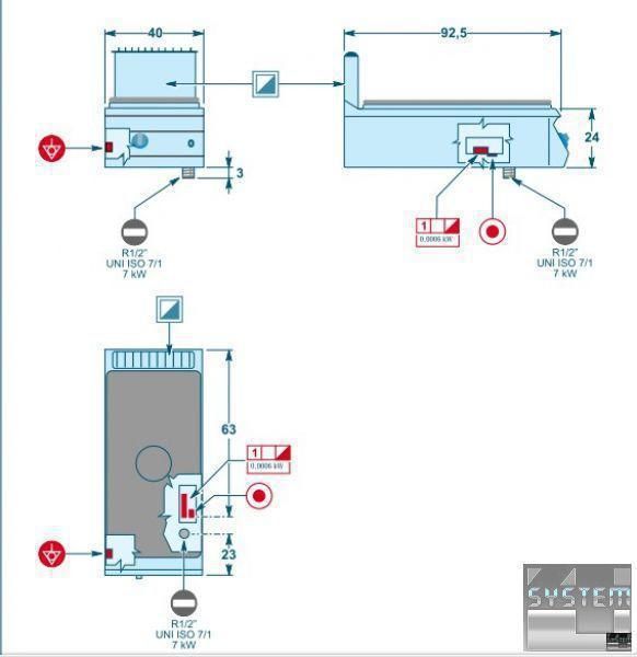 Газовая плита со сплошной поверхностью Angelo Po 090FAVA относится к тепловой модульной линии Alpha900. Конструкция из нержавеющей стали 18-10, толщиной 20/10 мм. Сплошная поверхность из чугуна G.26, горелка под поверхностью мощностью 7кВт. Термостатический клапан с пилотом, термопарой и пьезоэлектрическим воспламенением. Максимальная температура поверхности 400°C.