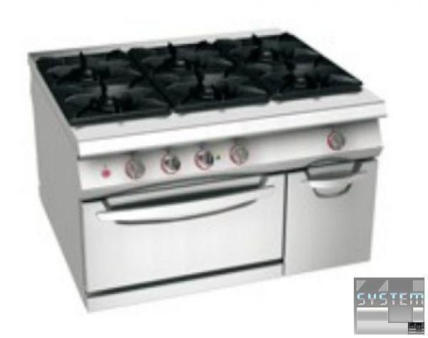 Газовая плита на 6 горелок Angelo Po 12WFAAE на электрической статической печи и нейтральном отделении относится к тепловой модульной линии OMEGA 1100.