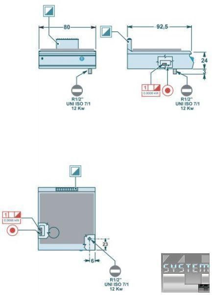 Газовая плита с одной нагревательной поверхностью Angelo Po 190TP0 относится к тепловой модульной линии Alpha900. Поверхность из нержавеющей стали 18-10, толщиной 12/10 мм. Нагревательная пластина сделана из прочной толстой стали 16MO5 (15 мм), которая не деформируется даже при длительном использовании. Нагревательный элемент - из нержавеющей стали, центральная горелка, управляется с помощью предохранительного клапана, мощностью 12 кВт в максимальном и 5 кВт в минимальном режиме. Поверхность пластины делится на изотермические зоны, уровень нагрева в которых уменьшается от центра (500°C) к краям. Рабочая площадь поверхности составляет 53.6 кв. дм.