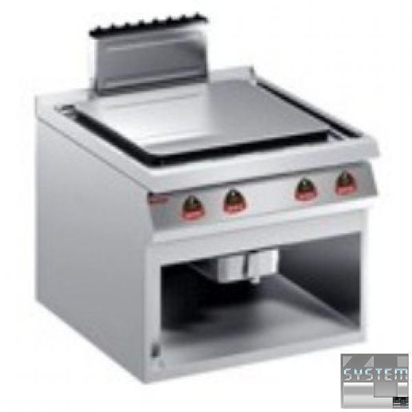 Газовая плита с одной нагревательной поверхностью Angelo Po 191TPE относится к тепловой модульной линииAlpha900. Конструкция из нержавеющей стали 18-10, толщиной 20/10 мм.Сплошная нагреваемая поверхность сделана из прочной толстой стали 16MO5 (15 мм) со специальным матовым покрытием, которая не деформируется даже при длительном использовании. Нагрев армированным нагревательным элементом из нержавеющей стали AISI309 (контактная система), который находится под поверхностью. Поверхность поделена на 4 отдельные зоны нагрева, каждая из них контролируется независимо от другой и регулируется с двух рабочих сторон. Максимальная температура 400°C. Электронная панель управления для контроля каждой зоны оснащена системой K-Tronic, которая позволяет снизить мощность (положение 1 = 1000 Вт, положение 2 = 2000 Вт, положение 3 = 3000 Вт), что оптимизирует процесс потребления энергии. Открытое нижнее отделение. Емкость для стекание жира и отходов. Размер шкафа 2/1 GN.