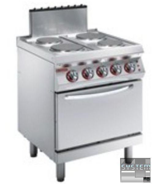 Электрическая плита с четырьмя круглыми конфорками и электрическим статическим духовым шкафом, вместимостью 2/1 GN Angelo Po 1G1PE1E относится к тепловой модульной линии GAMMA 700.