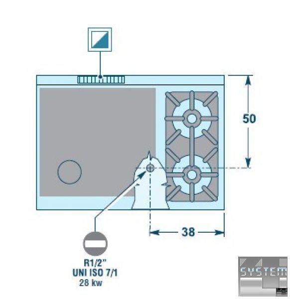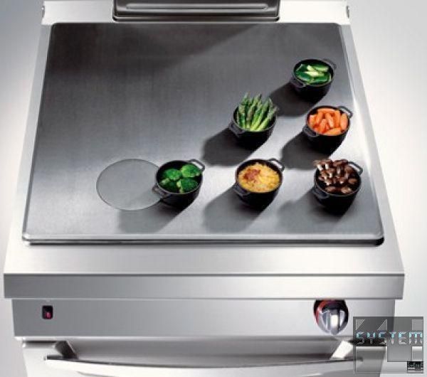 Нагревательный элемент - из нержавеющей стали, центральная горелка, управляется с помощью предохранительного клапана, мощностью 10 кВт в максимальном и 4 кВт в минимальном режиме. Поверхность пластины делится на изотермические зоны, уровень нагрева в которых уменьшается от центра (450°C) к краям.