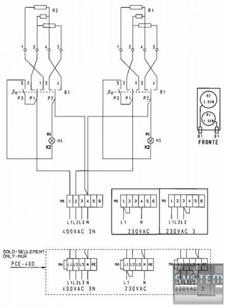 2 конфорки -1 х 2,6 кВт _ 220 мм, 1 х 1,5 кВт _ 180 мм