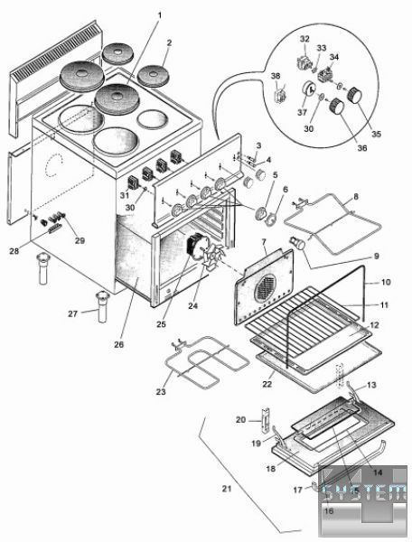 4 конфорки - 2 х 2,0 кВт, Ø 220 мм, 2 х 1,5 кВт, Ø 180 мм