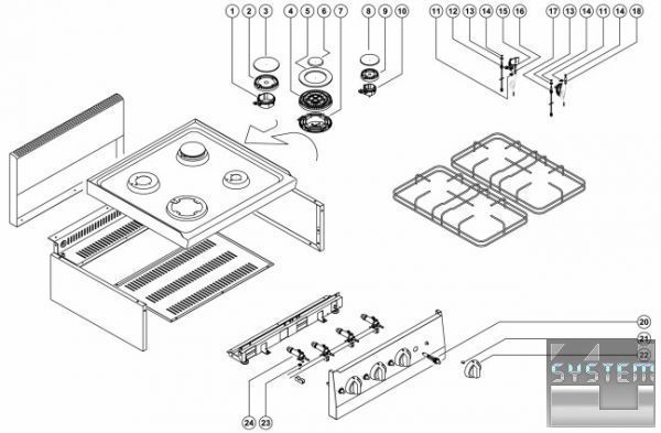 4 конфорки - 2 х 3 кВт (сзади), 1 х 3,5 кВт (спереди), 1 х 1,75 кВт (спереди)