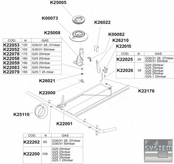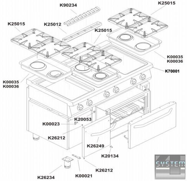 - 4 конфорки - 2 х 5,5 кВт, 2 х 3,6 кВт