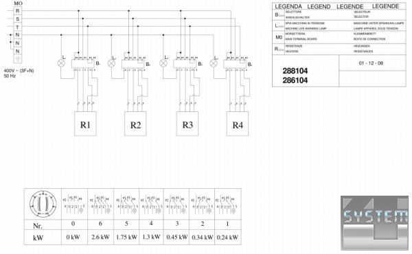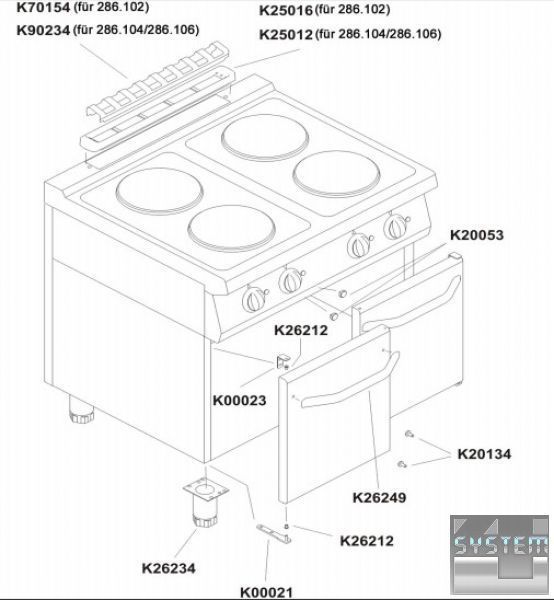 4 конфорки - 230 мм, 4 х 2,6 кВт