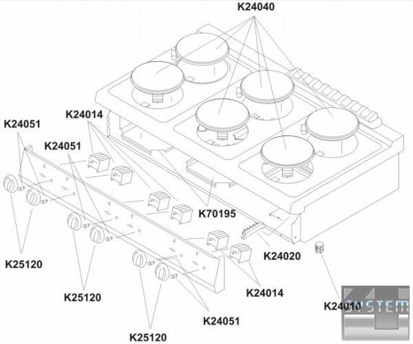 6 конфорок - 230 мм, 6 х 2,6 кВт