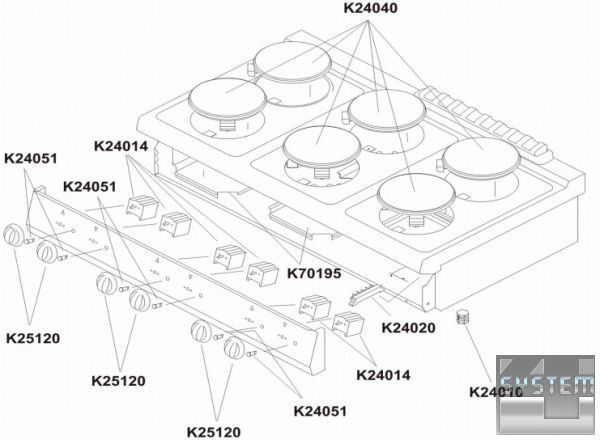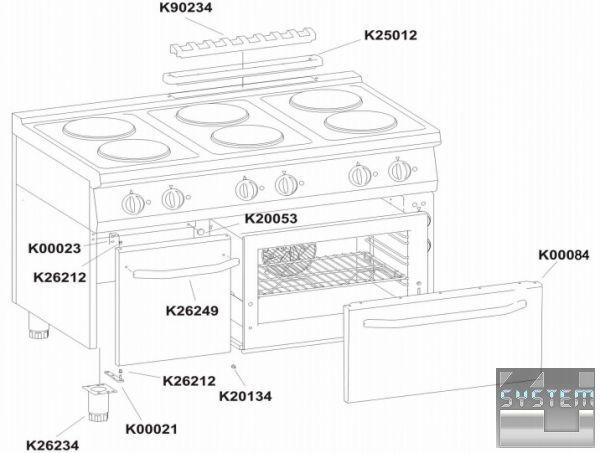 6 конфорок - Ø 230 мм, 6 х 2,6 кВт