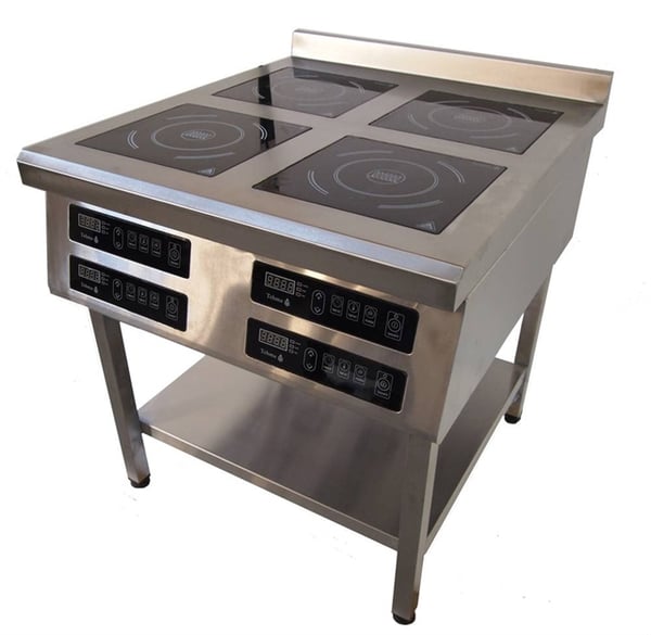 Индукционная напольная плита на 4х2,8 кВт для профессиональной кухни кафе и ресторана, оснащенная энергосберегающей конфоркой и большим удобным в повседневной работе повара сенсорным пультом, который исключает "затекания" и поломку кнопки.
