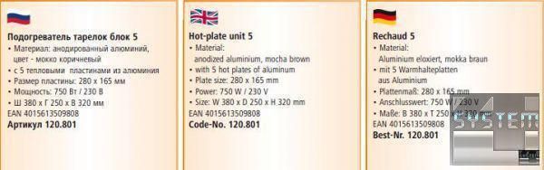 Технические характерситики плиты для подогрева Bartscher 120.801: