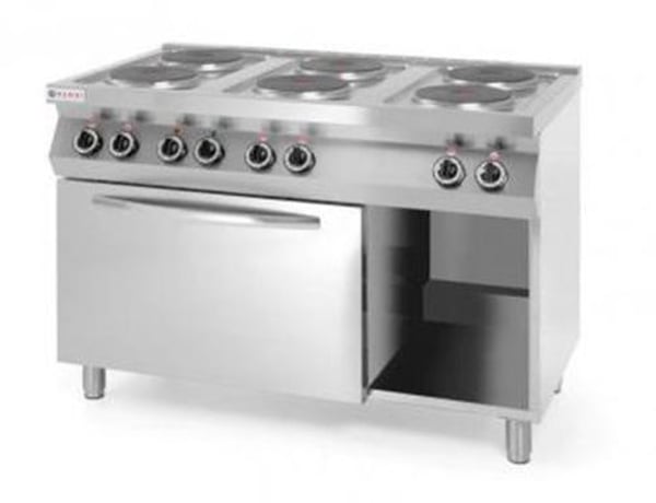 Профессиональная электрическая плита Hendi, в качестве нижнего модуля, оснащена электрическим конвекционным жарочным шкафом.