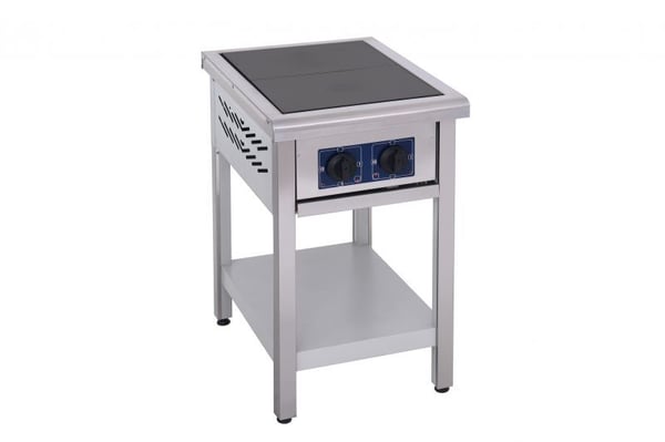 Корпус оборудования выполнен из высококачественной нержавеющей стали, оснащена плита 2 прямоугольными конфорками, которые расположены вертикально образовывают ровную поверхность.