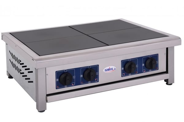 Корпус оборудования выполнен из высококачественной нержавеющей стали, оснащена плита 4-мя прямоугольными конфорками, которые образовывают ровную поверхность.