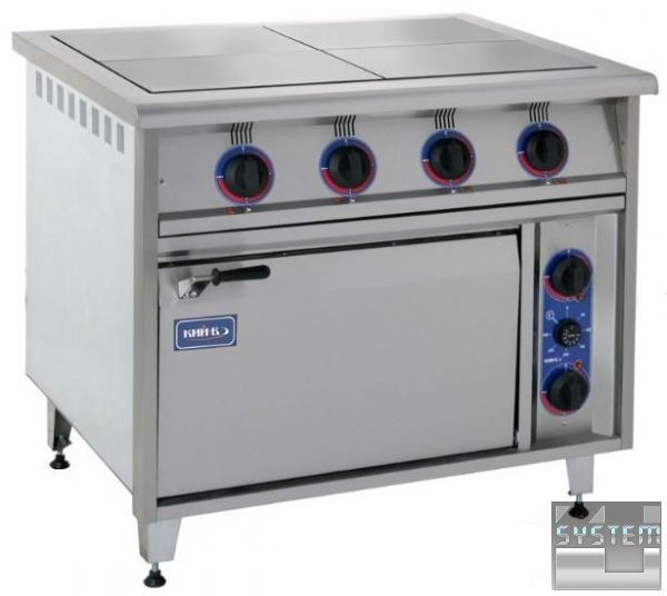 Плита профессиональная модель ПЕД-4 Econic с жарочным шкафом, выпускается с 4-я прямоугольными или квадратными энергосберегающими конфорками. За 15 мин конфорки выходят в режим. По сравнению с аналогичными нагревательными элементами конфорки ЭКО потребляют более чем на 30% меньше электроэнергии при одинаковой номинальной мощности. Плита ПЕД-4 Econic отличается своей надежностью и удобством в работе. Использование посуды большого диаметра и объема позволяют площадь и мощность конфорок. Отдельно стоящий жарочный шкаф по своим размерам сопоставим с размерами духовки плиты. Противни подходят в расстоечные шкафы модели ШР-6-760, ШР-9-760. Специальная геометрия ТЕНов и наличие у жарочного шкафа на нижнем уровне теплораспределяющего пода обеспечивают по всему объему рабочей камеры духовки равномерное распределение температуры. Округленные грани передней панели отличаются современным дизайном. Жарочный шкаф, для обеспечения режима принудительной конвекции, может быть укомплектован вентилятором. Учитывая требования эргономики, для комфортной работы персонала, панель управления конфорками расположена в верхней части плиты и снабжена удобными ручками. Режим нагрева конфорок обеспечивают удобное переключение ступенчатые переключатели. Сплошная ровная поверхность конфорок делает удобным и легким перемещение наплитной посуды. Удобная ручка духовки сделана из термостойкого материала, может устанавливаться с левой или правой стороны дверцы духовки. Предусмотрена естественная конвекция внутри духовки. Обрамление конфорок не имеет щелей и выполнено из цельного нержавеющего листа. Раздельное регулирование верхнего и нижнего блоков ТЭНов жарочного шкафа плиты обеспечивают ступенчатые переключатели. Регулятор температуры дает возможность автоматически регулировать и поддерживать заданную температуру духовки плиты. Визуальный контроль работы плиты обеспечивают световые индикаторы. Эффективная санитарная обработка духовки проводится благодаря быстросъемным направляющим для противней. Монтаж профессиональной плиты выполнен проводом с термостойкой изоляцией. Возможность регулировки по высоте дают ножки-опоры плиты. Стабильность температурных параметров, предохранение конфорки во время работы от перегрева и недостаточного нагрева обеспечивает свойство саморегулирования. Низкую тепловую инерционность конструкции конфорки обуславливает непосредственная передача тепла от нагревательной плёнки на подложку теплоприемника.