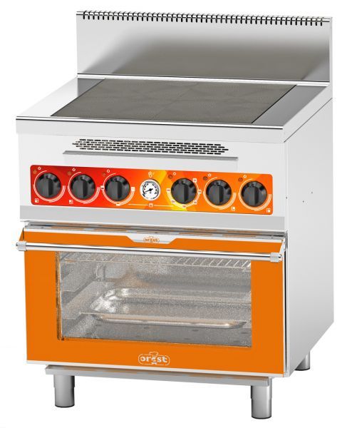 Могут оснащаться дверями (для моделей без духовки) и духовыми шкафами. Наличие заднего вентилируемого борта обеспечивает защиту от проливания жидкости, а также вентиляцию внутренних элементов. Духовые шкафы плит оснащены универсальными направляющими позволяющими использовать гастроемкости GN 1/1 (530*325) или противни 600*400 мм.