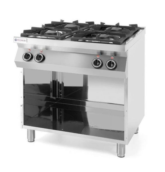 Профессиональная газовая плита Hendi, в качестве нижнего модуля, идет без духового шкафа и оснащена закрытым модулем с 3-х сторон, который можно использовать для хранения сковородок или кастрюль.