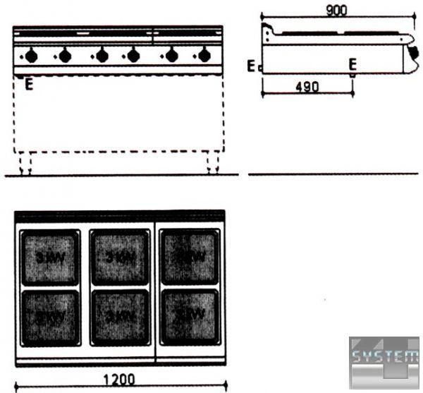 Конфорки (300 x 300 mm): 6 х 3 кВт