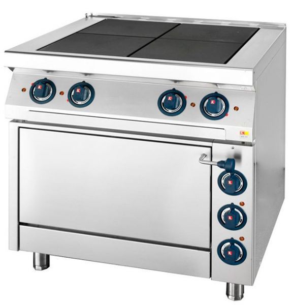 Корпус оборудования выполнен из высококачественной нержавеющей стали, оснащена плита 4 прямоугольными конфорками, которые образовывают ровную поверхность. Округленные грани передней панели отличаются современным дизайном, статическая электрическая духовка.