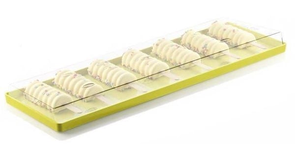 Поднос для мороженого VGEL 03 от итальянской компании “Silikomart” относится к профессиональному кондитерскому инвентарю. Предназначен для транспортировки, хранения и представления на витрине кондитерских изделий.