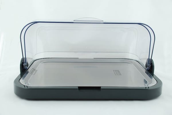 Одноуровневый поднос APS имеет поддон, выполнен из высококачественной пищевой нержавеющей стали 18/10, прозрачная крышка изготовлена из плексигласа.