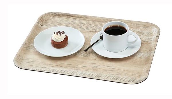 Поднос для посуды с печатью под натуральное дерево, выполнен из практичного меламина, которому характерна высокая ударопрочность и твердость поверхности.