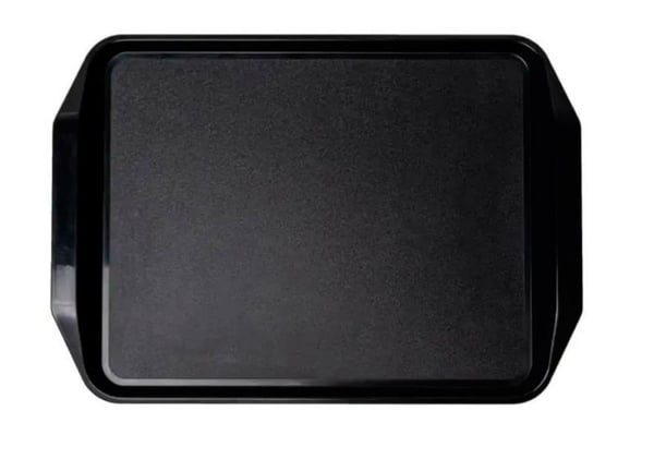 Черный поднос для посуды выполнен из практичного полипропилена, которому характерна высокая ударопрочность и твердость поверхности.