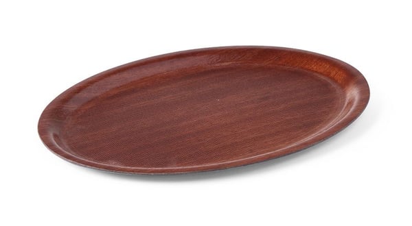 Поднос с антискользящим покрытием, выполнен из ламинированного дерева, овальной формы. Ударопрочный и износостойкий.