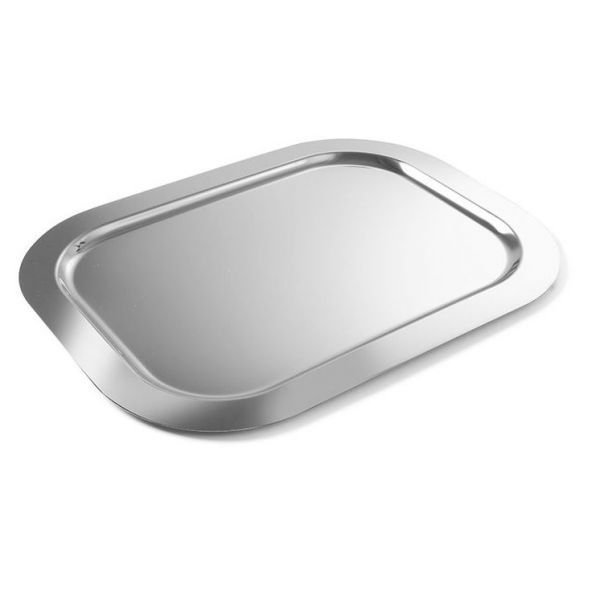 Поднос с гладким ободком, выполнен из нержавеющей стали. Отполирован, края скругленные.