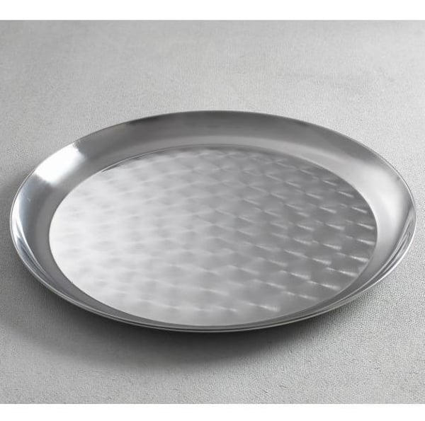Поднос сервировочный, выполнен из нержавеющей стали. Отполирован, круглой формы.