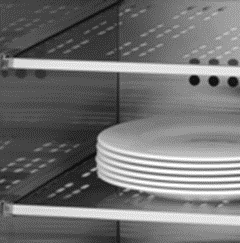 Подогреватель рассчитан на 72 обеденных тарелки с максимальным диаметром 24 см, или 40 тарелок для пиццы диаметром 33 см