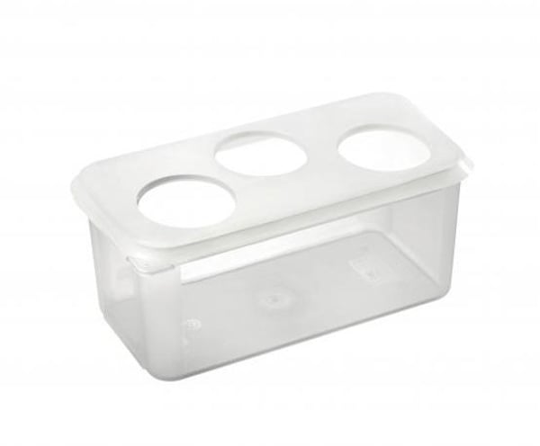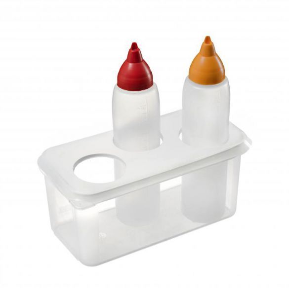 Органайзер дозирования Araven GN 1/3 с 3 отверстиями позволяет организовать зону работы, а также качественно и гигиенично хранить все соусы. Значительно облегчает транспортировку.