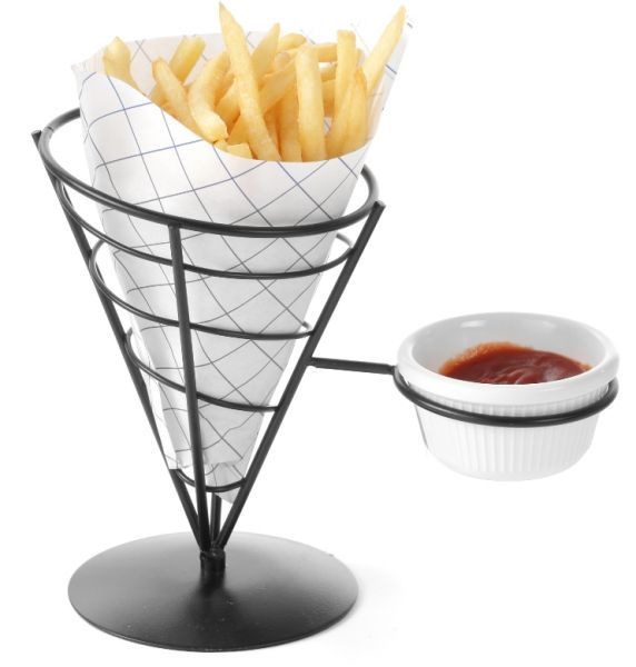 Подставка для выкладки фри станет оригинальным и практичным дополнением любого стола, а особенно - шведского. Конусный каркас для фритюра Hendi 630914 интересный и незаменимый атрибут профессиональной посуды для ресторанов, кафе, баров и пабов.