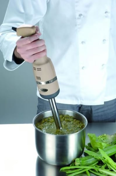 Этот блендер работает с переменной скоростью от 2.500 до 15.000 об/мин; это делает блендер идеальным для пюрирования, эмульгирования и взбивания.