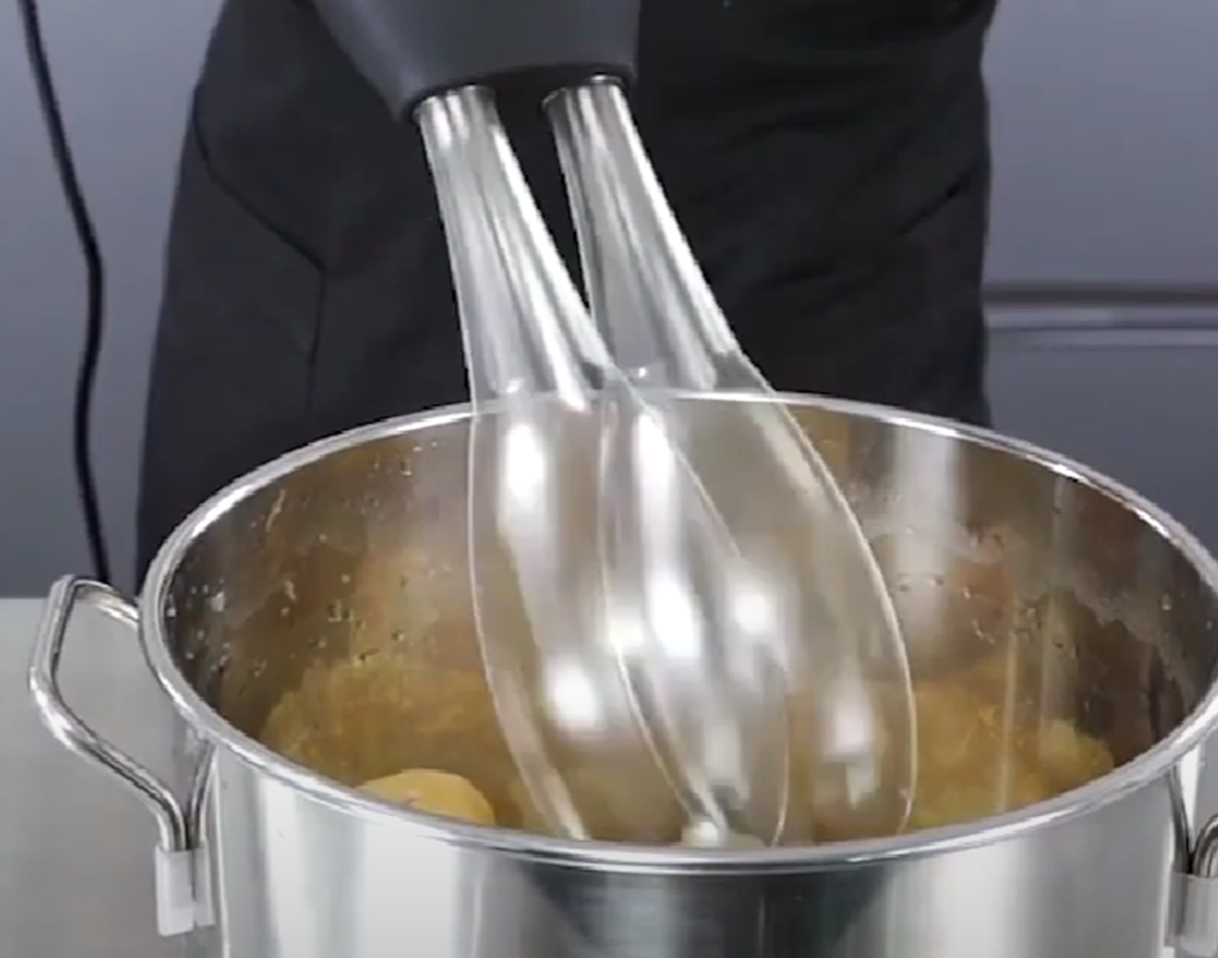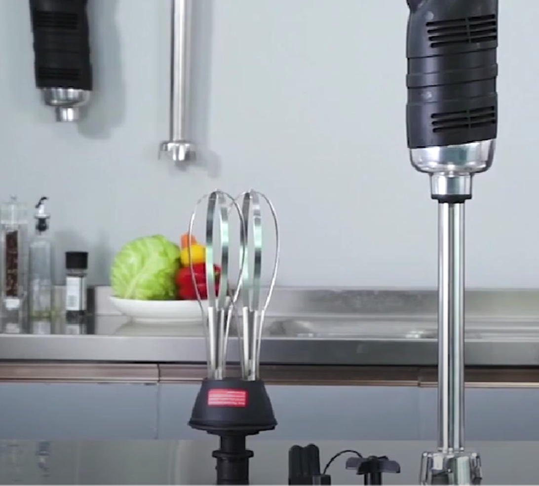 Погружной блендер-набор с 300 мм ножкой и 250 мм венчиком - необходимое оборудование для приготовления особых блюд или ингредиентов и напитков, что сокращает время приготовления почти вдвое и станет настоящим помощником для каждого повара. Возможность использования различных насадок делает погружной блендер функциональным устройством. Блендер измельчает и перемешивает, производит соусы и пасты, эмульсии, фруктовые и овощные пюре (кроме картофельного), джемы, муссы, протертые супы, печеночные паштеты, тесто для блинов. По сравнению со стационарным блендером, погружной гораздо компактнее, поскольку им легко пользоваться на выездных мероприятиях. Использовать погружной блендер можно в любой посуде. Но лучше выбирайте стены посуды повыше, чтобы не разбрызгать содержимое.