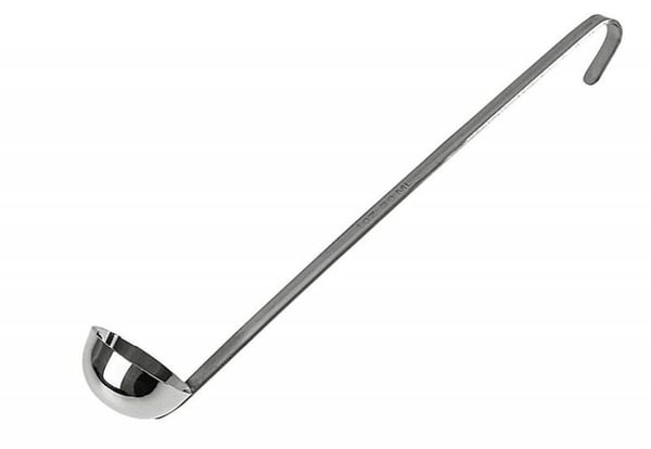 Эргономичная ручка со специальным изгибом для удобного подвешивания половника.