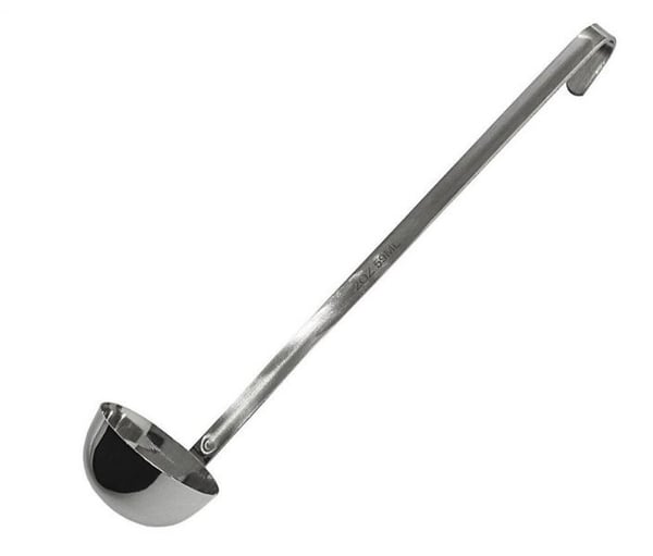 Эргономичная ручка со специальным изгибом для удобного подвешивания половника.