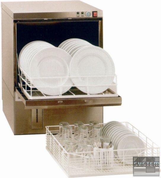 Фронтальные посудомоечные машины предоставляют возможность мытья тарелок диаметром от 20 до 32 см. Производительность зависит от мощности нагревательного элемента бака (2,8 и 6 кВт) и продолжительности моющего цикла 0–240 сек. Машины могут быть оснащены системой фильтрации и имеют округлые углы моющего танка, что предотвращает образование грязи в углах. Имеется автоматический дозатор для моющего и ополаскивающего средства, обратный клапан, электронный дисплей управления и индикатор поломки.