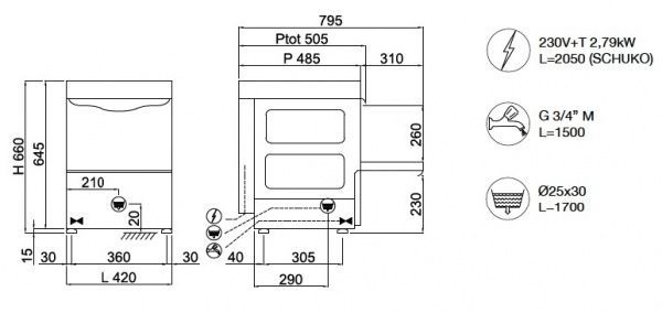 Двойной дозатор моющего средства и электрический ополаскиватель в серийной комплектации обеспечивает максимальную чистоту на каждом цикле мытья с большой экономией, тогда как печатные моющие и полоскающие рычаги гарантируют надёжную работу и долгий срок службы. Корпус полностью выполнен из стали AISI 304 и разработан со всеми компонентами в передней части, чтобы обеспечить простое техобслуживание со стороны технического специалиста. Прочные и надежные посудомоечные машины, призванные сделать ваш день удобнее.