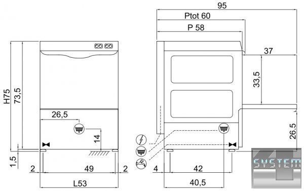 Габ. размеры (cm) L - P - H: 53x61x75,5h