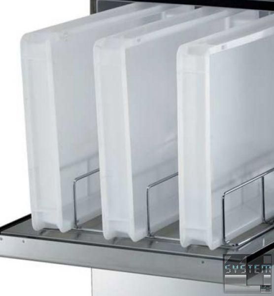 Благодаря специальной корзине можно мыть посуду GN 1/1 высотой до 65 мм, коробки для выпечки 600x400 и противни, сохраняя размеры удобной посудомоечной машины.