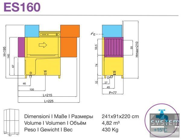 Линейка Evolution Line разработана для больших ресторанов, где требуется непрерывная продолжительная работа посудомоечных машин. Линейка насчитывает 28 моделей тоннельных посудомоечных машин рассчитанных на использование квадратных корзин размером 50х50х13 см. Модели ES55, ES60, ES65 и ES70 имеют ширину 79 см.