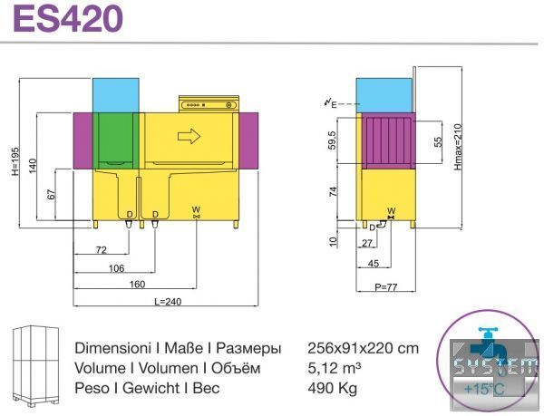 Линейка Evolution Line разработана для больших ресторанов, где требуется непрерывная продолжительная работа посудомоечных машин. Линейка насчитывает 28 моделей тоннельных посудомоечных машин рассчитанных на использование квадратных корзин размером 50х50х13 см. Модели ES55, ES60, ES65 и ES70 имеют ширину 79 см.