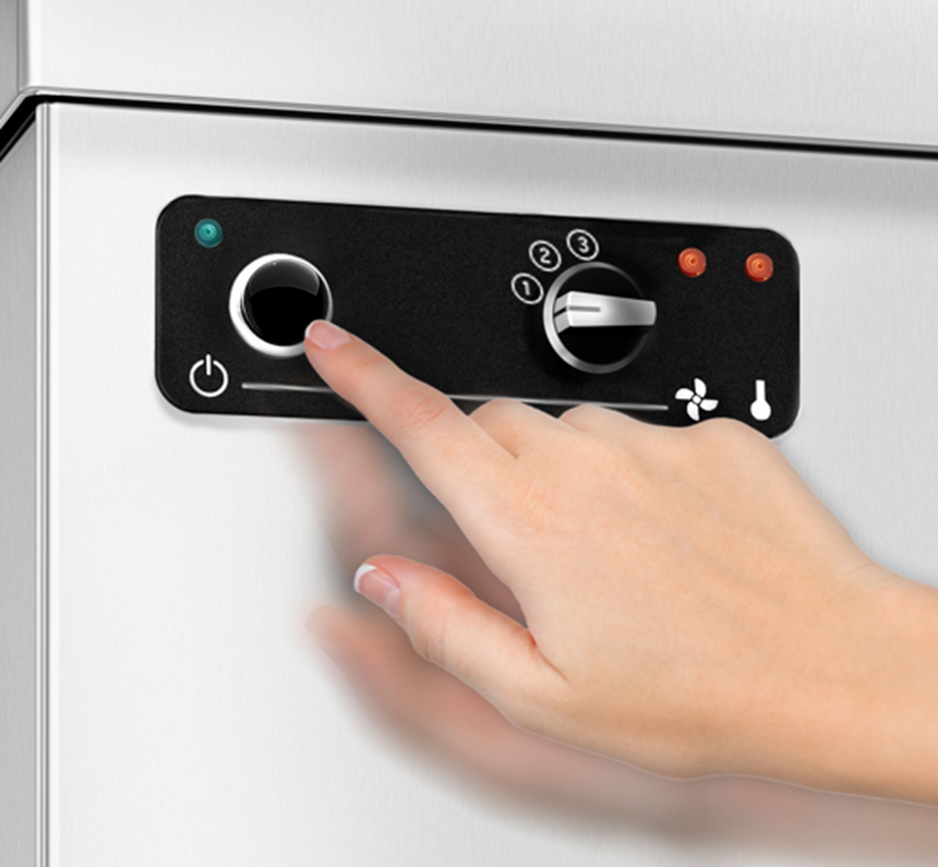Цикл мойки запускается автоматически после закрытия вытяжки.