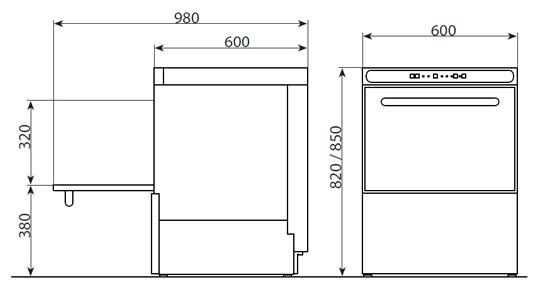 При высоте загрузочного окна 360 мм в этой машине можно мыть большие пивные кружки, тарелки диаметром 320 мм. Расход воды за один цикл мойки составляет 2,7л. Режим мойки обеспечивается при температуре 60 ºС. Ополаскивание обеспечивается при температуре 85ºС.