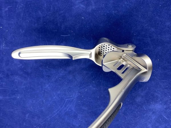 Инструмент для выдавливания чеснока полностью выполнен из высококачественной нержавеющей стали.
