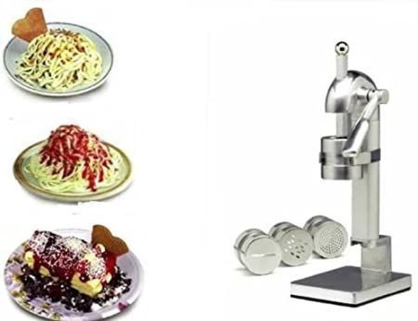 Небольшой ручной пресс для мороженого Vema при помощи которого, используя различные стаканы, можно получать мороженое различных форм типа “спагетти”,“лапша” или “лазанья”.