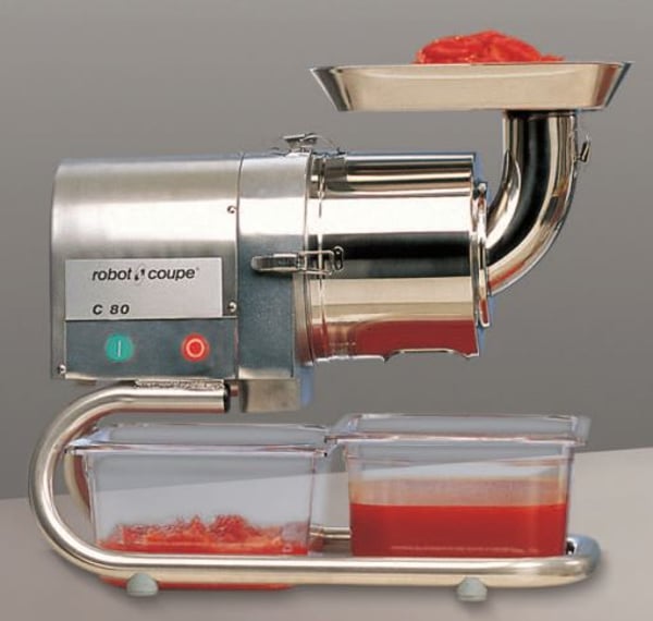 Протирочная машина-автоматическое сито Robot Coupe C 80 служит для приготовления пюре из ягод, мягких и печеных фруктов и овощей, соусов, супа гаспачо, мягкого мороженого, сорбетов, оснований для соусов, пастилы, быстрого процеживания супов. С помощью автоматического сита C80 можно отделить семена, косточки, жесткие волокна от овощей, получить свежие соки и морсы, варенье, суп-пюре. Непрерывная подача ингредиентов облегчает работу, значительно экономит время и предлагает блюда домашнего приготовления.