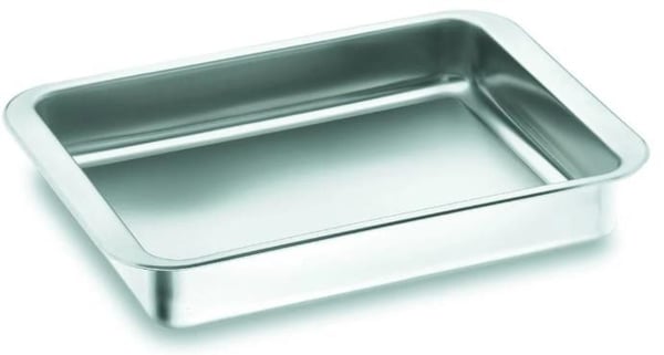 Противень изготавливается из высококачественной нержавеющей стали 18/10 (18% хрома, 10% никеля): хром придает сплаву твердость и химическую стойкость, никель – износоустойчивость и яркость, с полированным рантом