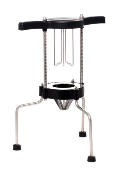 Ручной резак приспособлен на трех стабильных антискользящих ножках, между которыми есть пространство для контейнера, куда помещаются уже готовые нарезанные дольки.